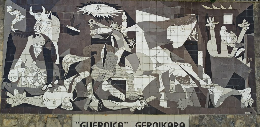Auf unserem Weg nach San Sebastian haben wir einen Abstecher nach Gernika gemacht. Dieser Ort ist zum einen bekannt durch das große Gemälde von Picasso und auch durch die Bombardierung durch die Legion Condor. Der Ort eher klein und übersichtlich. Spuren von der Zerstörung sind nicht zu sehen. Es gibt Tafeln mit Erklärungen und Bildern.