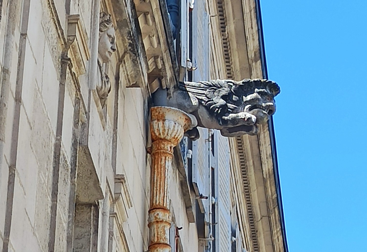Gargoyl – Wasserspeier an einem Wohnhaus