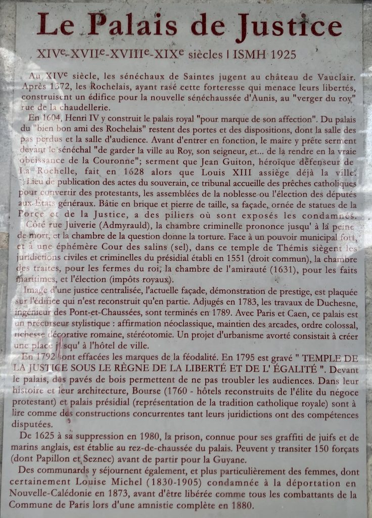 Im Justizpalast wurden auch die über 100 Gefangenen gesammelt, die von La Rochelle aus zusammen mit Papillon in die Strafkolonie auf Guayana verschifft wurden.